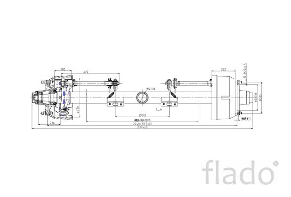 Ось 12т 2040мм с АБС (круглая балка Ф127) HJ Bridge HJS12Z023S2040N230.